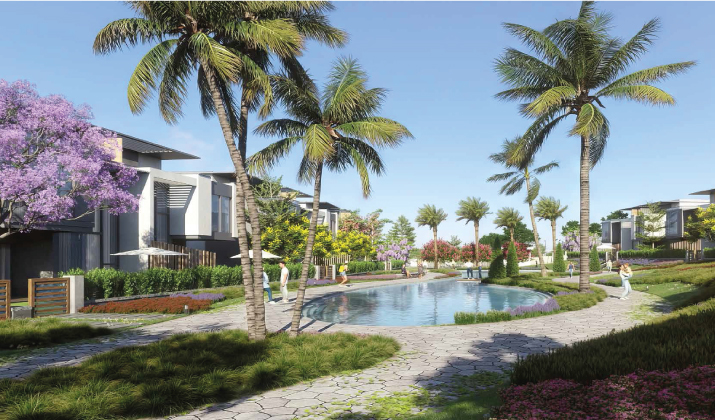 حوالي 81٪ من مساحة المشروع مخصصة للمساحات الخضراء والمرافق المفتوحة.