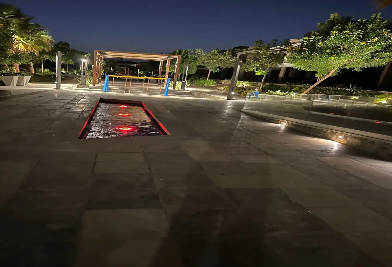 مساحات خضراء واسعة وبحيرات صناعية ونوافير مائية