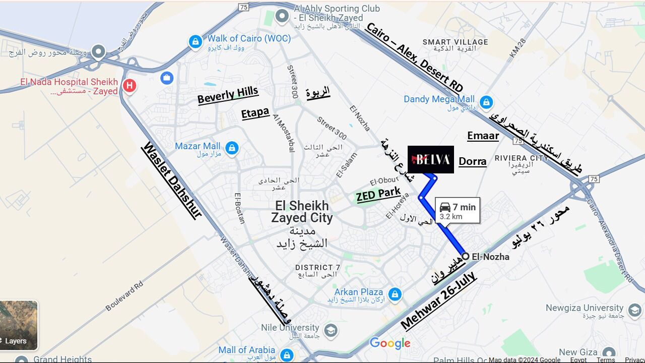 يقع كمبوند بيلفا الشيخ زايد – Belva Sheikh Zayed على شارع النزهة في قلب الشيخ زايد، بالقرب من: