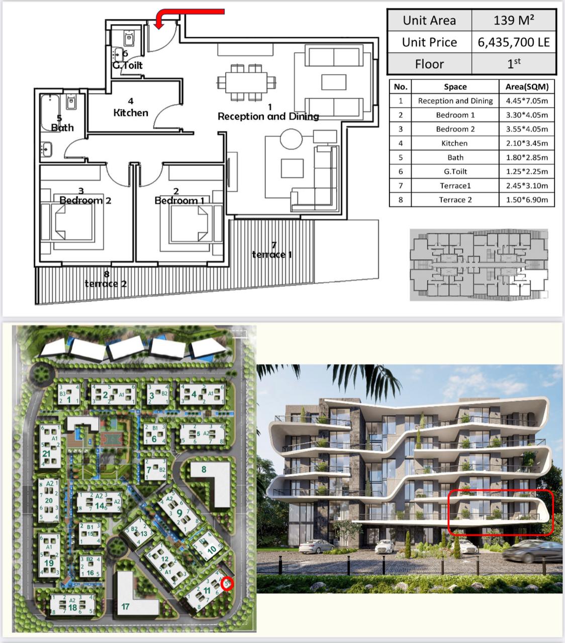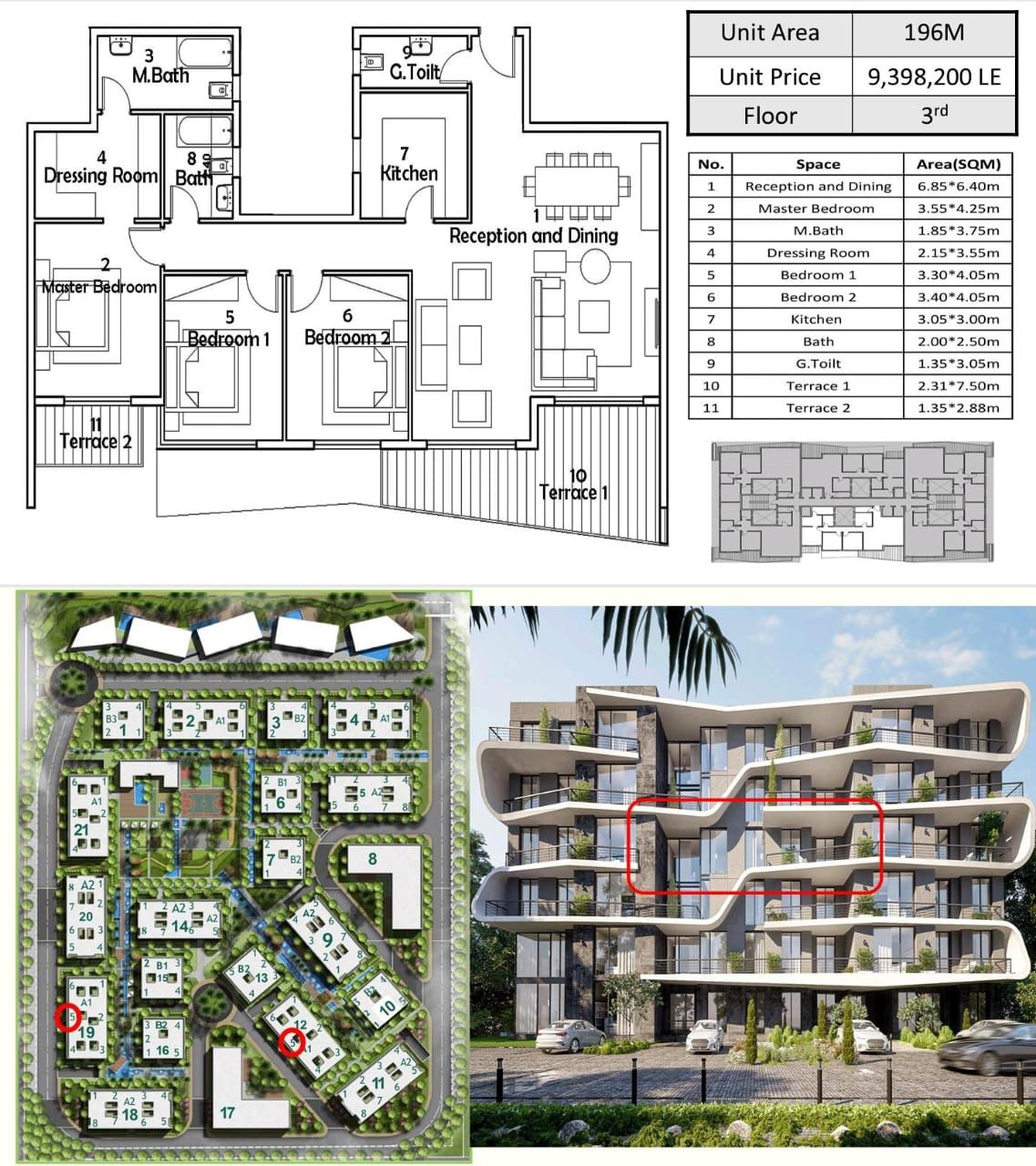 عدد الغرف: 3–4 غرف نوم (حسب التقسيم)