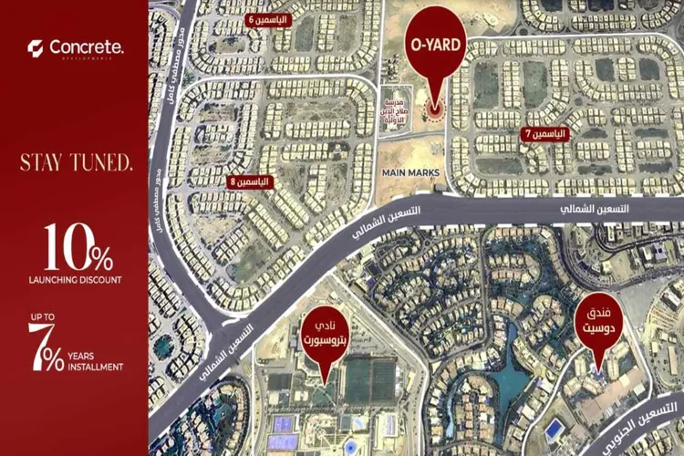 يقع Oyard Mall في القاهرة الجديدة – امتداد المستثمرين الشمالية (North Investors Extension)، على شارع رئيسي بعرض 90 متر يربط شارع التسعين الشمالي بالطريق الدائري، مباشرة أمام نادي بلاتينيوم (Platinum Club)، وقريب من منطقة النوادي. سهولة الوصول مضمونة من جميع مناطق القاهرة بفضل قربه من طريق السويس والطريق الدائري.