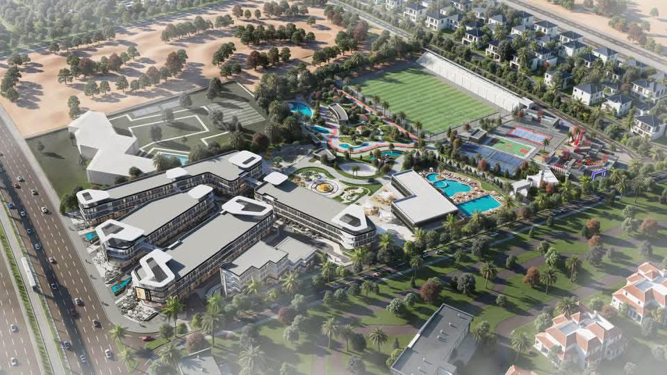 مسطحات مائية وبحيرات صناعية، بلازا ومساحات خضراء شاسعة.