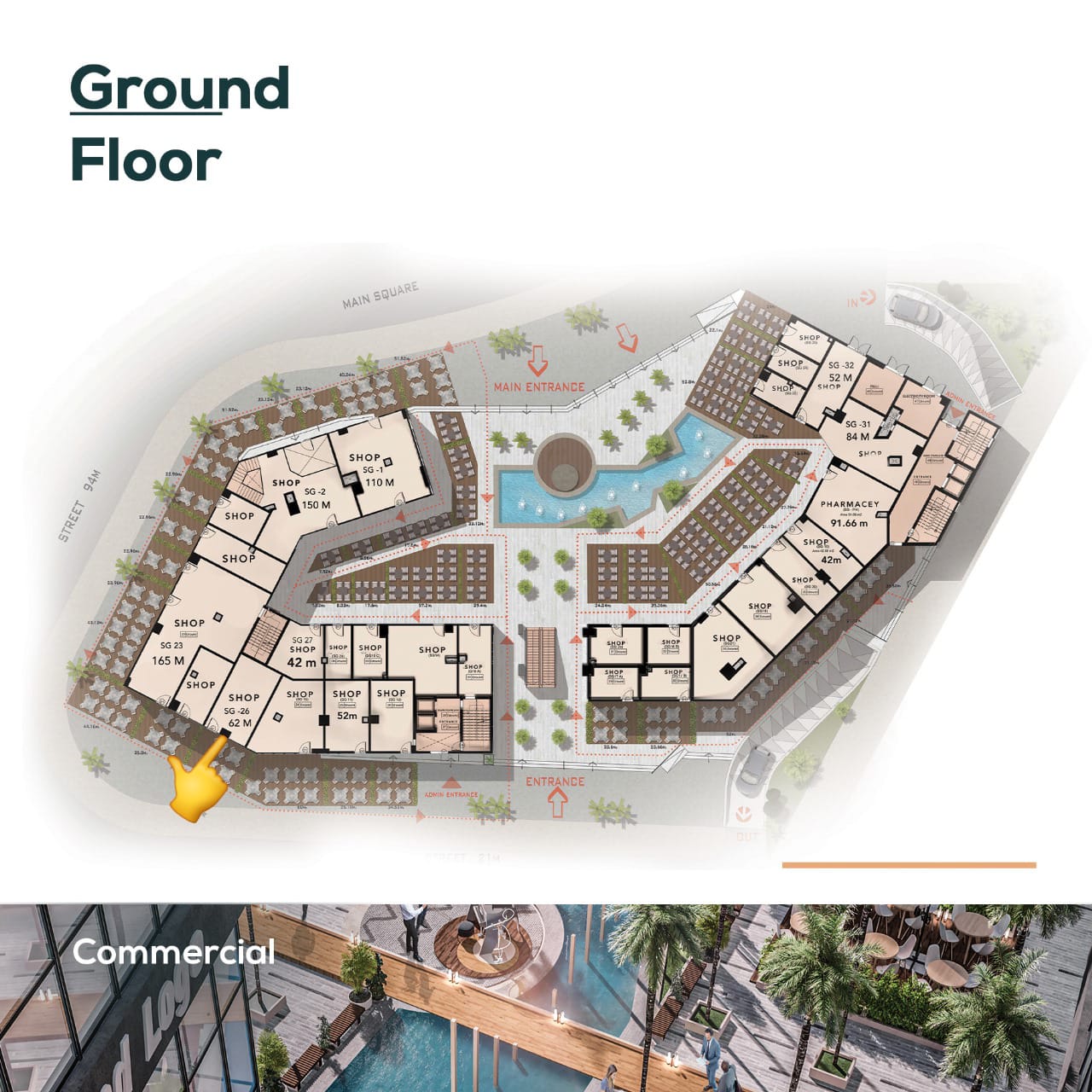 الإطلالة: فيو على ميدان الأمل، بلازما بمساحة 1900 متر²، والمدينة الرياضية