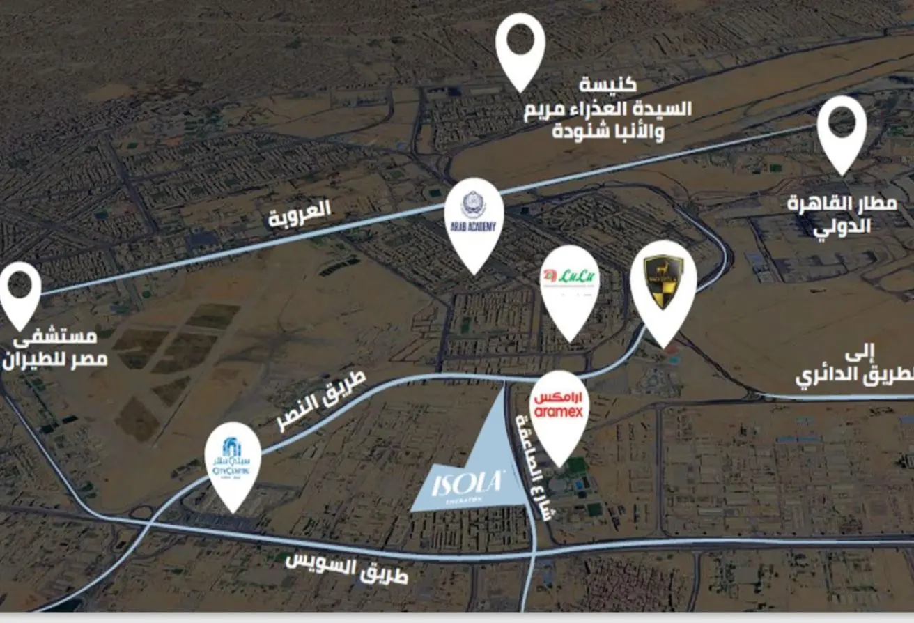 يقع المكتب داخل مشروع Isola Sheraton في قلب منطقة شيراتون مصر الجديدة على شارع الصاعقة، بالقرب من أهم الطرق والمحاور الحيوية:
