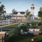 مساحات خضراء واسعة وبحيرات صناعية.