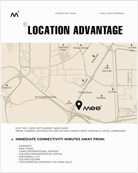 يقع المشروع في التجمع السادس بالقاهرة الجديدة، بالقرب من الطريق الدائري الأوسطي وطريق العين السخنة، وعلى مقربة من مناطق حيوية مثل هايد بارك وميفيدا، مما يجعله موقعاً متميزاً للاستثمار الفندقي.