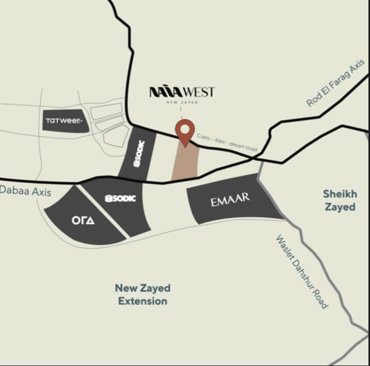 موقع استراتيجي في قلب زايد الجديدة بالقرب من المحاور الرئيسية.