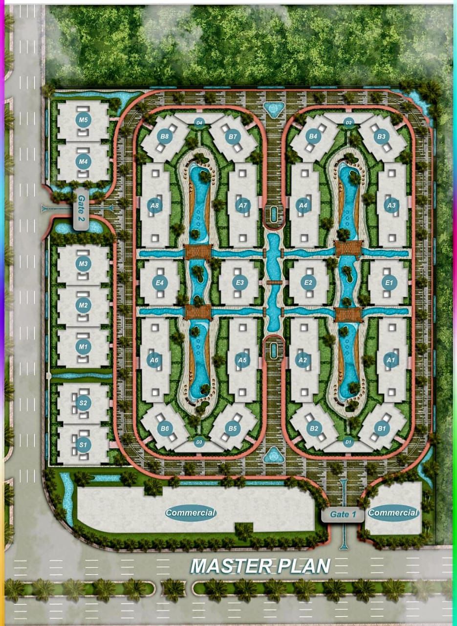 75% من مساحة الكمبوند مخصصة للحدائق والمسطحات المائية.