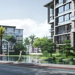 مساحات خضراء كبيرة + بحيرات صناعية (water features) داخل المشروع.