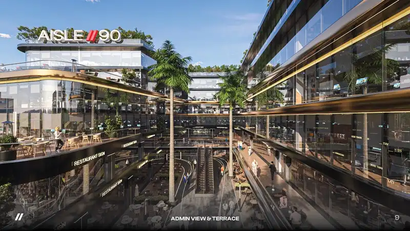 Aisle 90 هو مشروع تجاري يضم وحدات تجارية و إدارية و عيادات طبيه يقع في التجمع الخامس من شركة Scope Developments