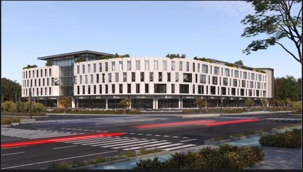 تصميم عصري ومستدام: واجهات زجاجية فاخرة، مداخل راقية، واعتماد على الطاقة الشمسية.