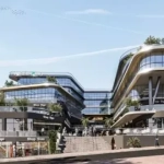المول مكون من: طابق أرضي + أول للدور التجاري + ثم 5 أدوار علوية للمكاتب الإدارية والعيادات الطبية.
