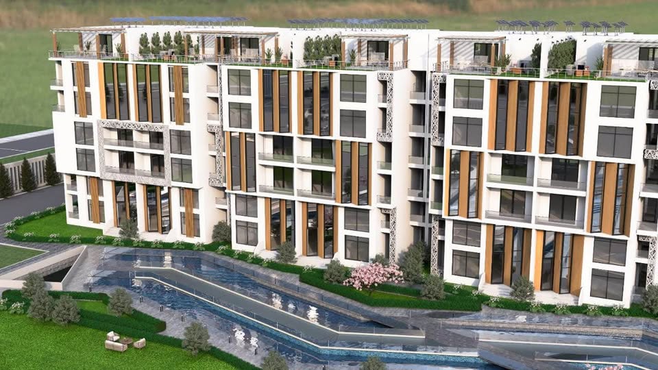 مساحات خضراء واسعة، بحيرات صناعية، حمامات سباحة